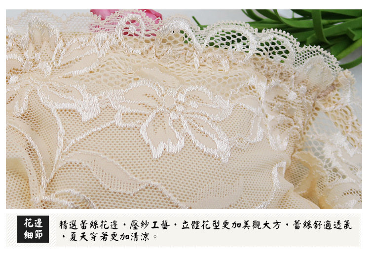 - 花邊細節:精選蕾絲花邊,壓紗工藝,立體花型更加美觀大方,蕾絲舒適透氣,夏天穿著更加清涼。