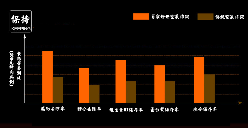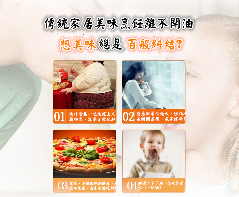 - 360度高速熱風循環 聚能加熱,降低食物脂肪高達80%以上