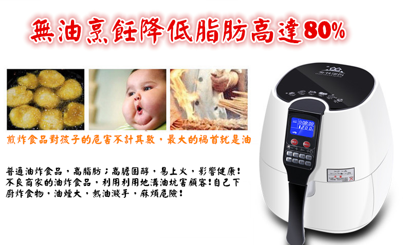 如果您有以上問題,想要美食又要吃得健康,可以考慮我們這一款無油無煙,且可以智慧溫控的健空氣炸鍋。
