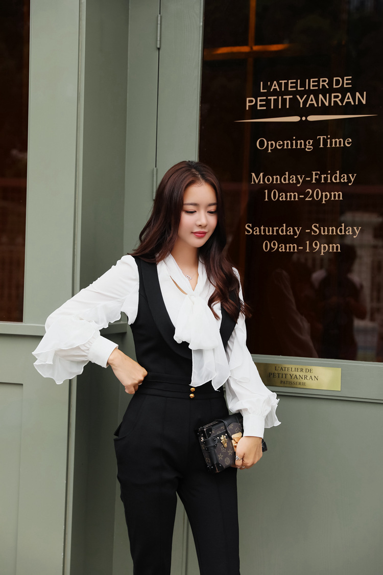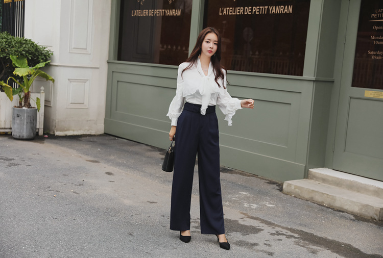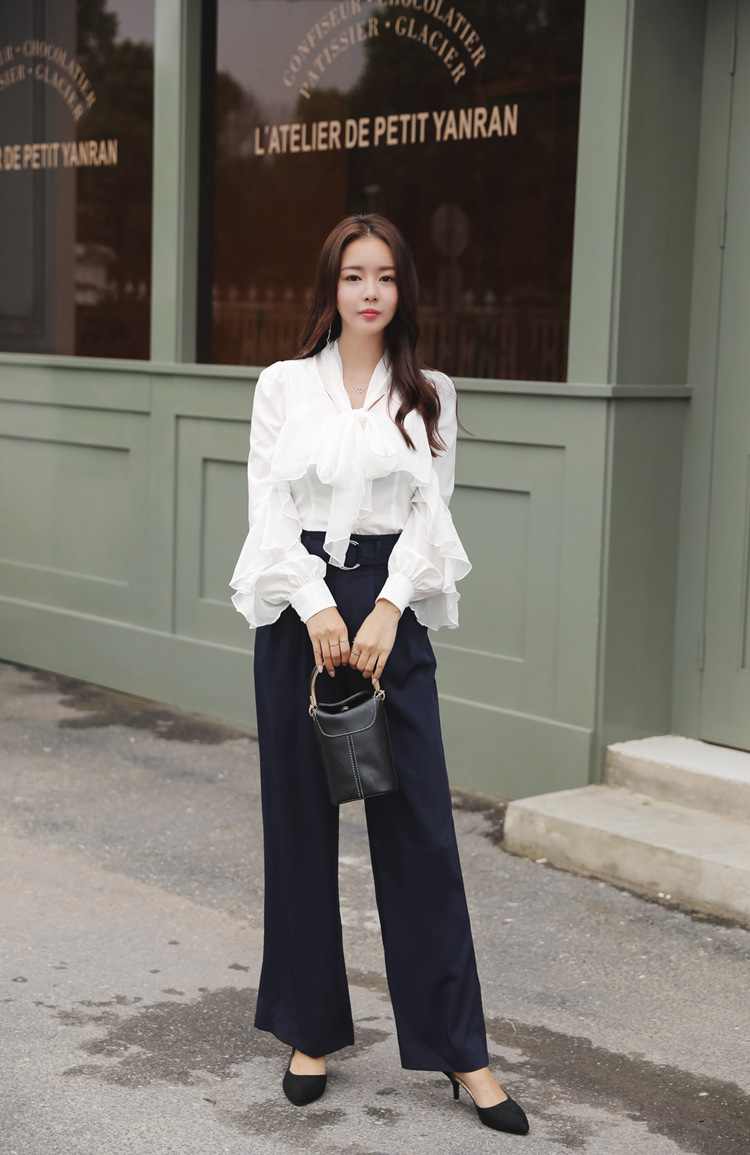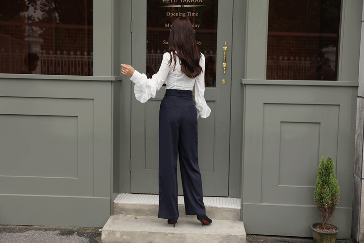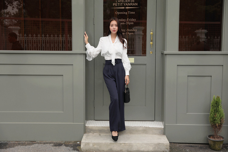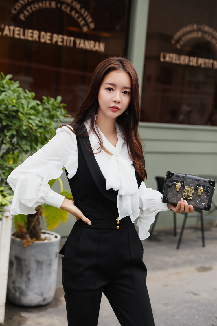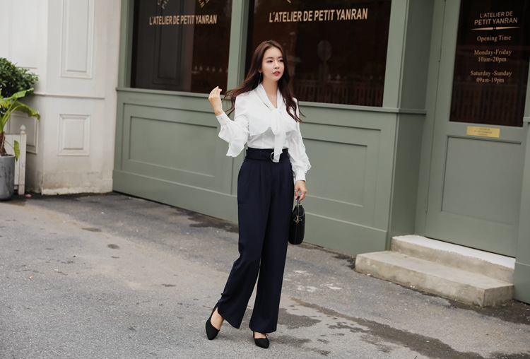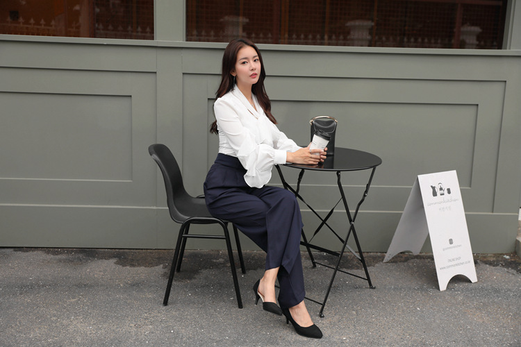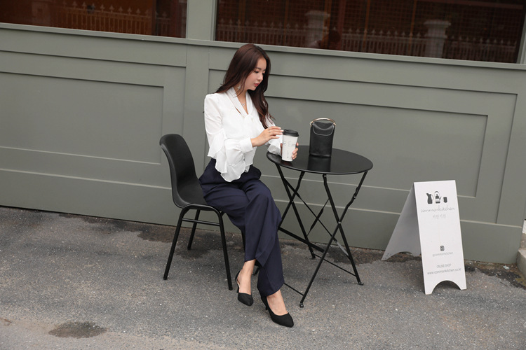 此款襯衫非常時髦,穿起來高貴大方,且修身顯瘦,可搭配黑色闊腳褲,或者黑色吊帶褲。本頁面商品僅售白色襯衫。