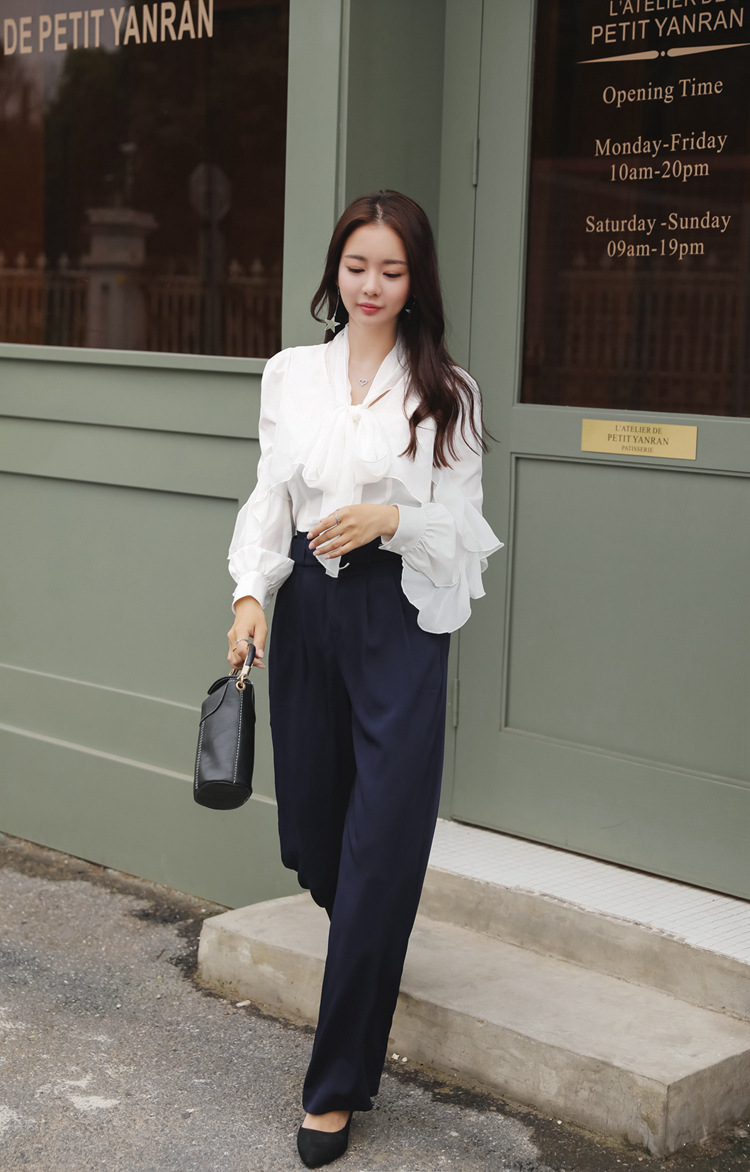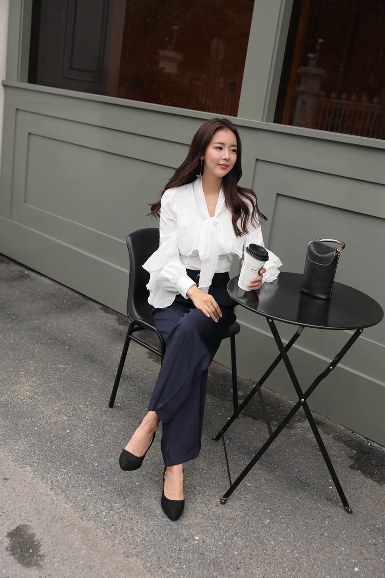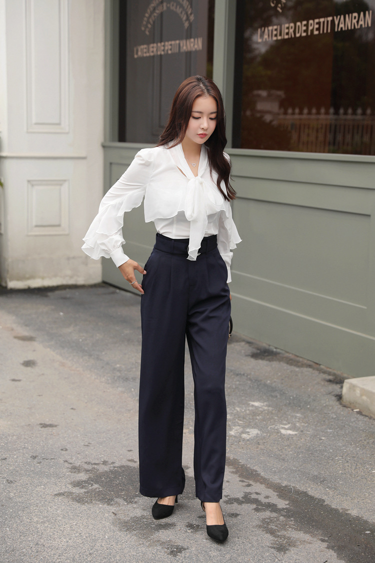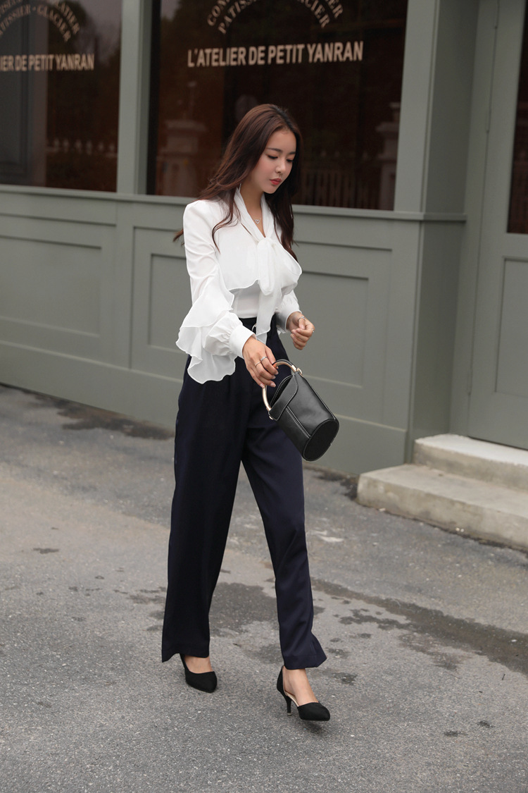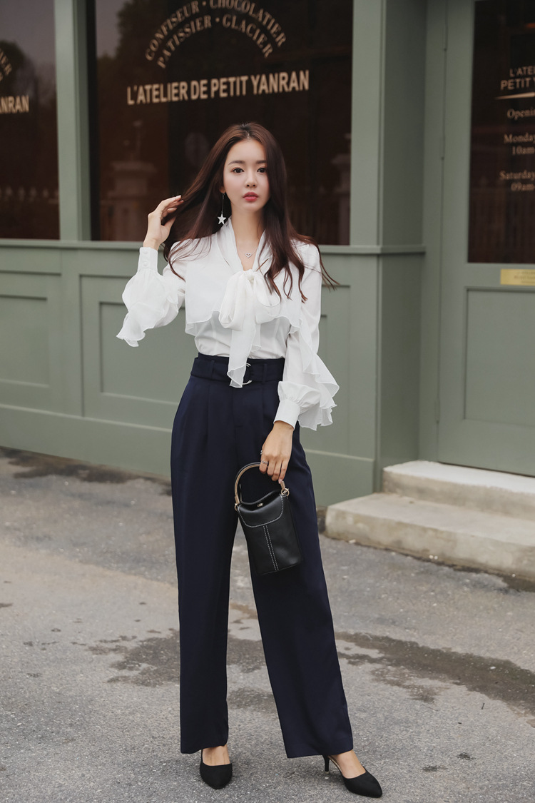 此款襯衫非常時髦,穿起來高貴大方,且修身顯瘦,可搭配黑色闊腳褲,或者黑色吊帶褲。本頁面商品僅售白色襯衫。