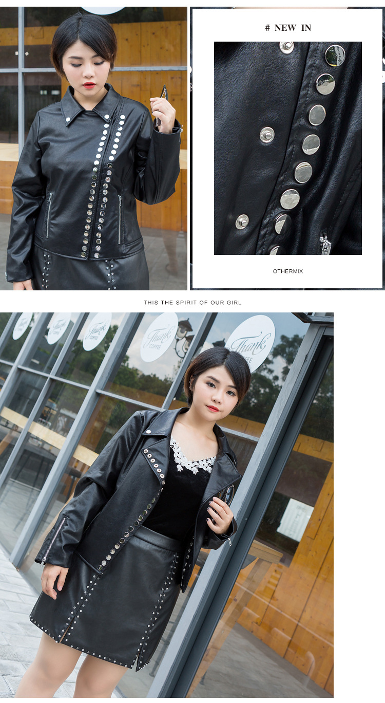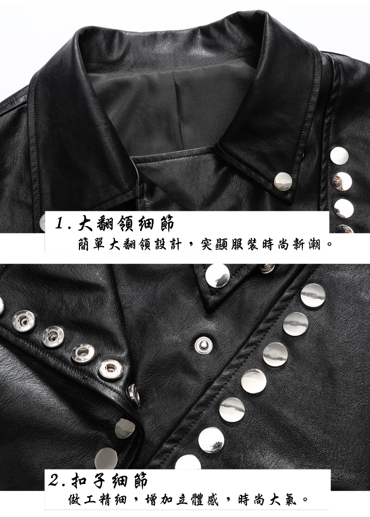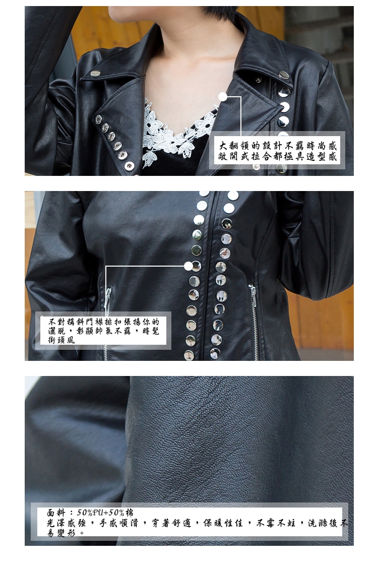 這款大尺碼皮衣,即使體重100公斤,胸圍122公分,腰圍118公分,仍有尺寸可挑。穿起來外觀修身顯瘦且時髦。