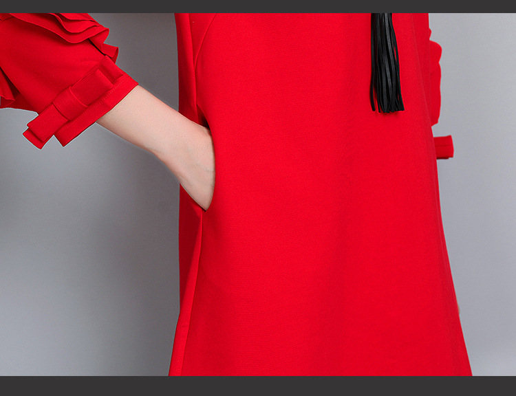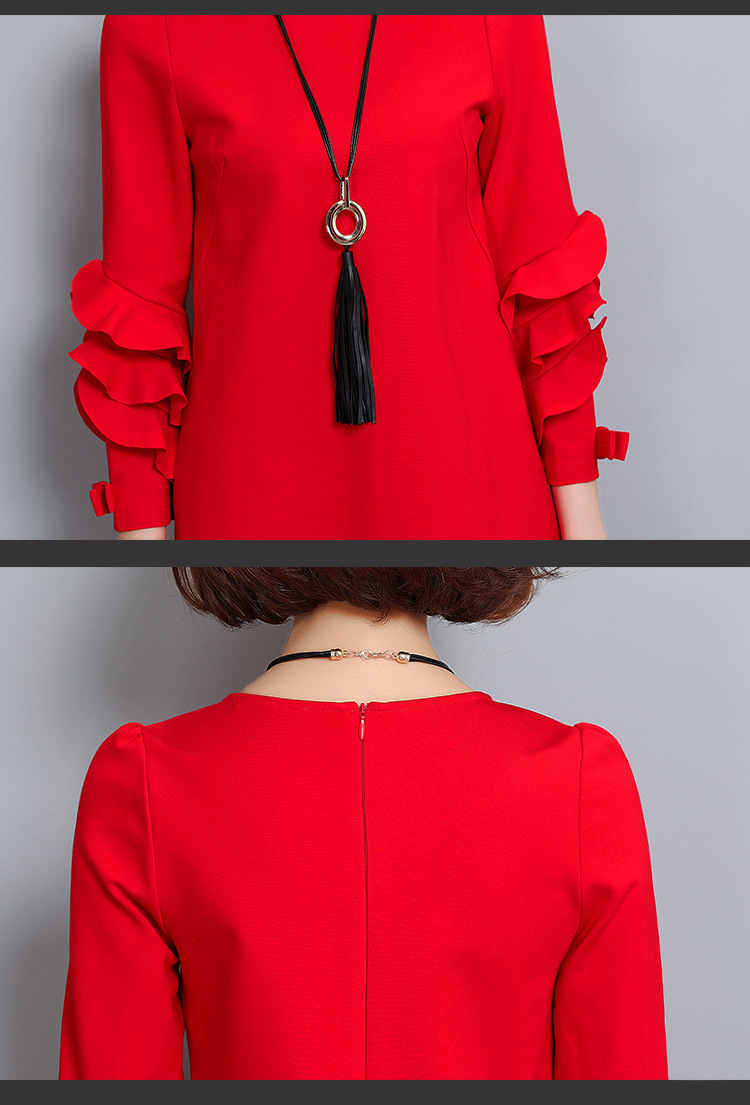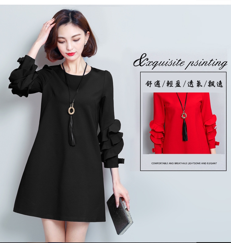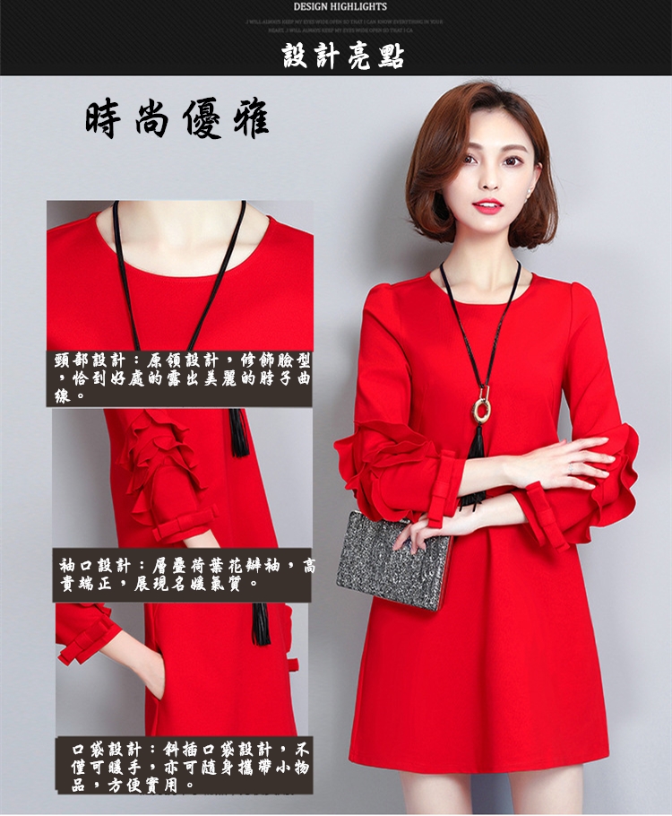 2.層疊荷葉花瓣袖,高貴端正,展現名媛氣質。