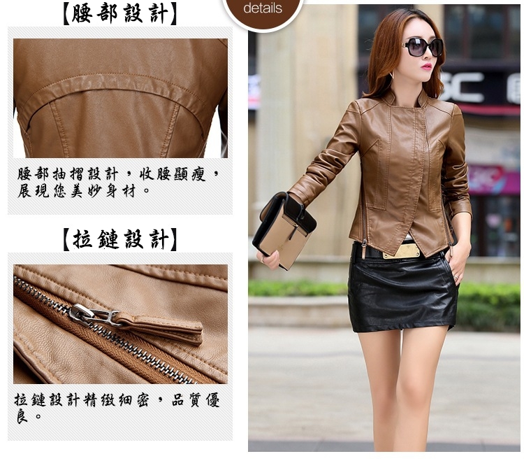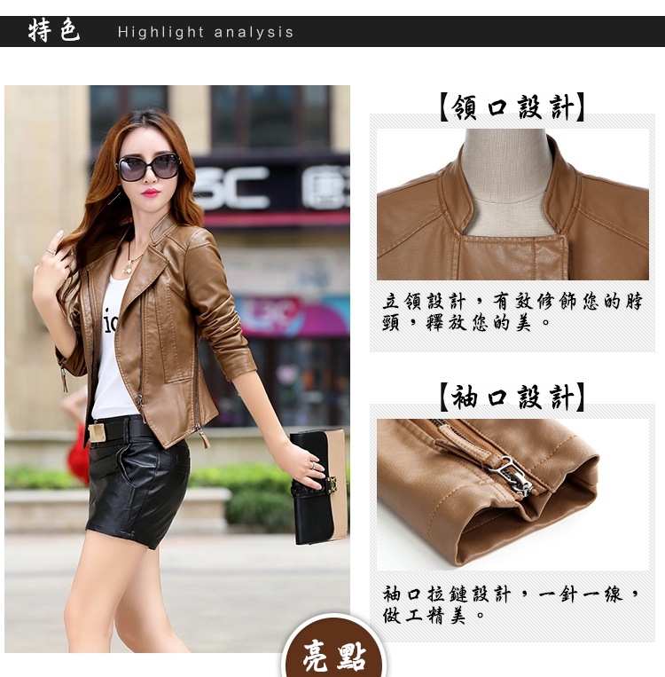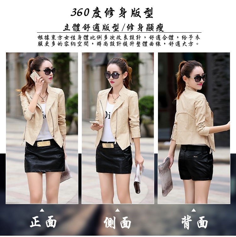 這件皮衣外套是根據東方女性身體比例多次改良設計,舒適合體,給予衣服更多的容納空間,時尚設計提升整體曲線,舒適大方。