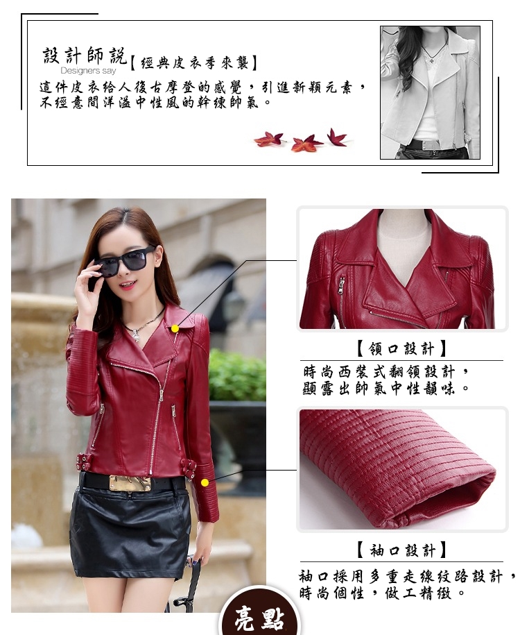 這件皮衣給人復古摩登的感覺,引進新穎元素,不經意間洋溢中性風的幹練帥氣。