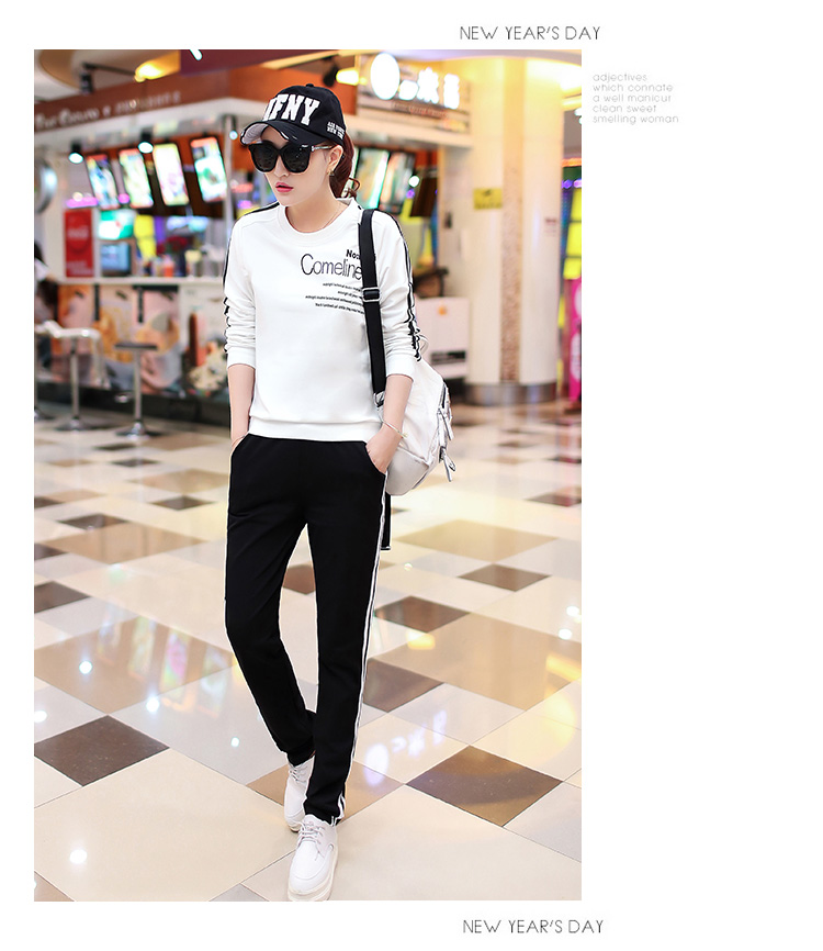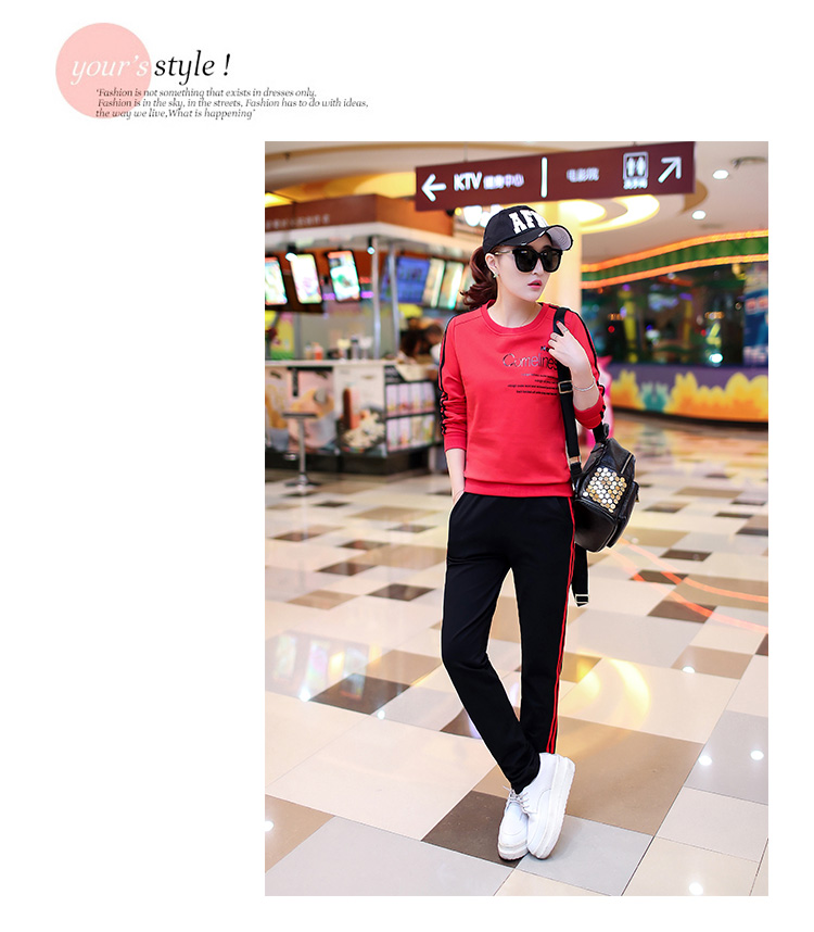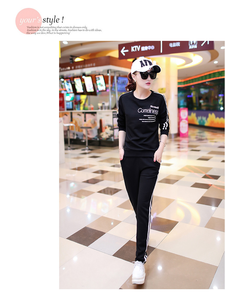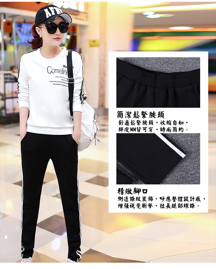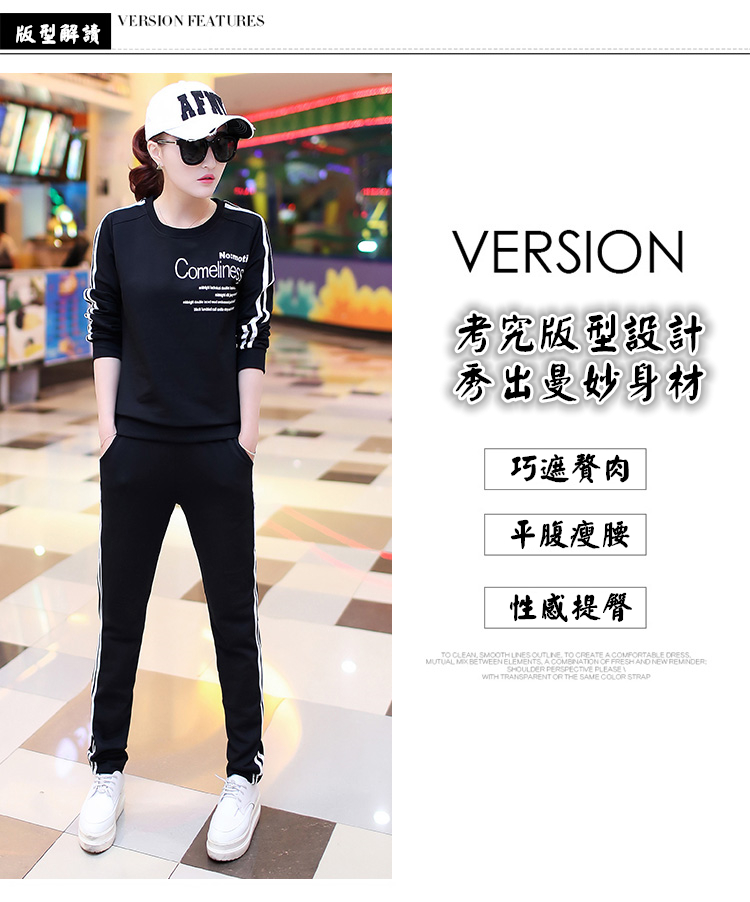 非常時尚簡約的一款休閒運動套裝哦!穿上就顯瘦,此款休閒服完全不挑身材不挑版型,不論胖瘦MM都可以穿的喲!非常簡約年輕的一款,上班、居家、約會、健身都必不可少的哦!精明的選擇!